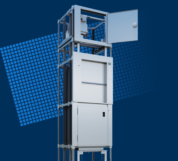 The service line COMBI combines the strengths of the service line CLASSIC and the service line BASE D into a single lift! Behind it is a centrally divided cabin, the upper part of which is accessible via the vertical sliding doors and the lower part via the single-leaf hinged doors. For example, food can be transported in the upper section, while there is still room for a drinks crate in the lower section.